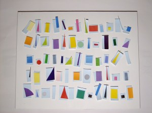 With one eye on the fast-approaching beginning of the school year, I came up with one idea: instead of completing each work, i.e., pasting the cutout pieces, I could complete a couple of works and leave the final step to be done once school begins. That would give me a head start. Happily I finished one yesterday after the first week of school and will start on the other.