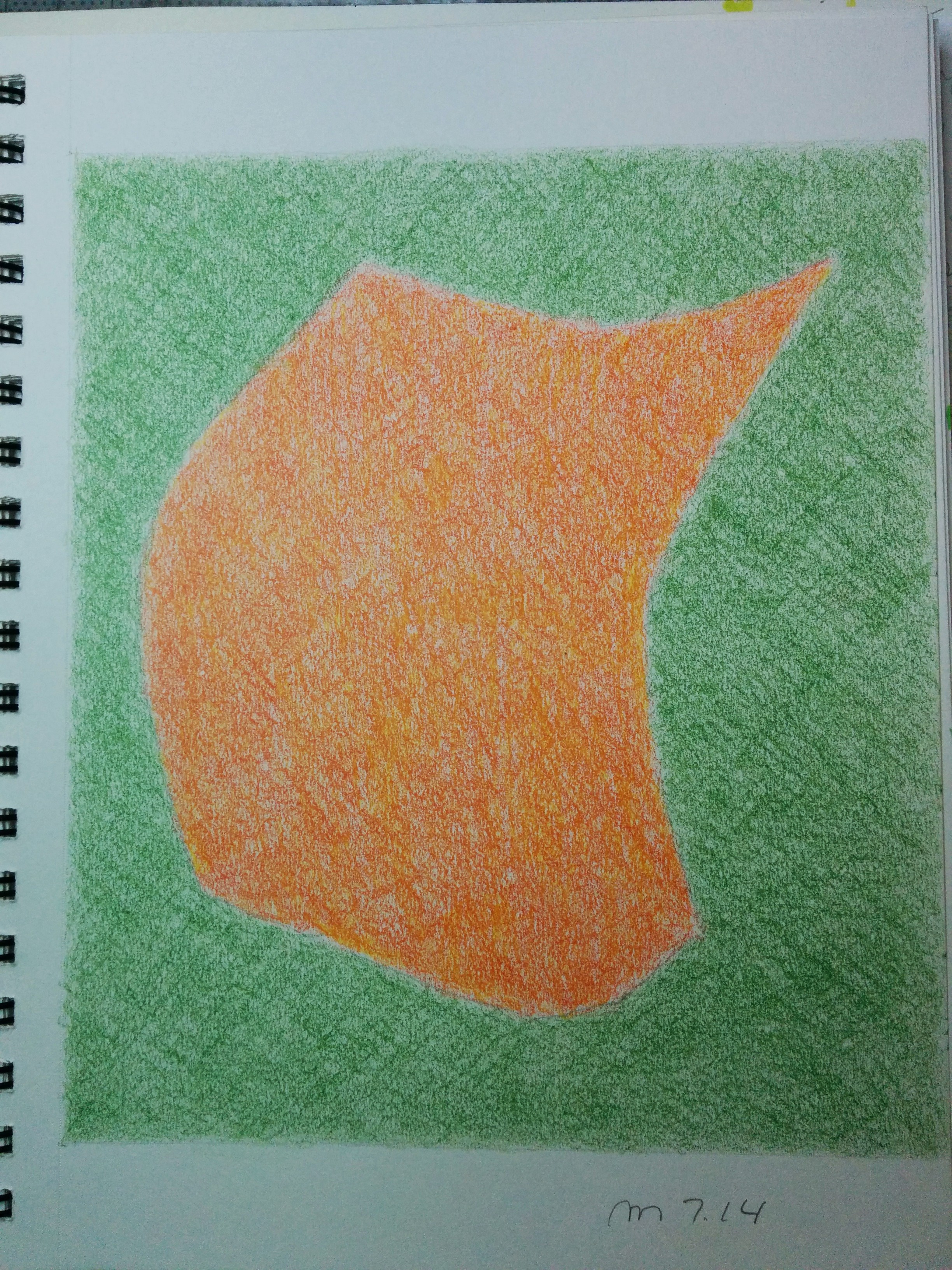 As I try to analyze the process that led to my present work, I am thinking that playing with color and shape was enjoyable but not completely satisfying. Now I see that, to me, I needed to be clearer about why I wanted to work with minimal/reductive images. I needed to articulate an idea/belief/feeling to create the thread to lead me forward. The transition required answering some questions about what was most important to express, as well as seeing if perhaps there was already a thread to carry forward. Simply, why was I making art? What the heck was I doing?